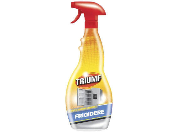 Triumf pentru frigidere este un detergent special conceput pentru curățarea igienică a frigiderelor și congelatoarelor. Formula sa blândă elimină eficient murdăria, urmele de alimente și mirosurile neplăcute, fără să deterioreze suprafețele sau să lase reziduuri chimice.