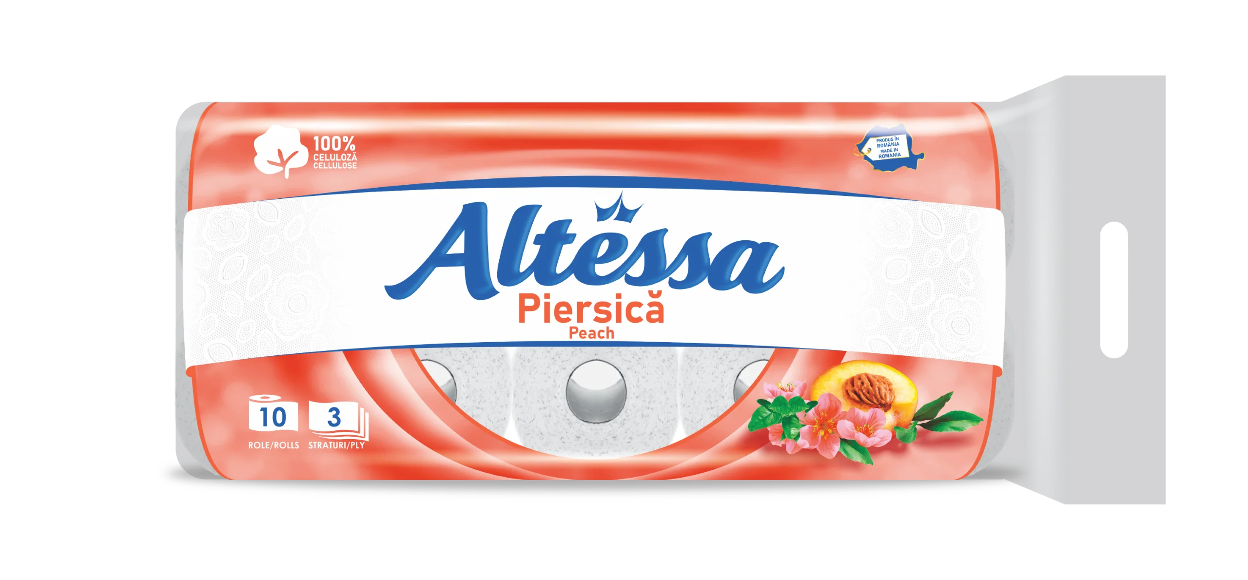 Hârtie Igienică Altessa – Aromă de Piersică, 3 Straturi, 10 Role