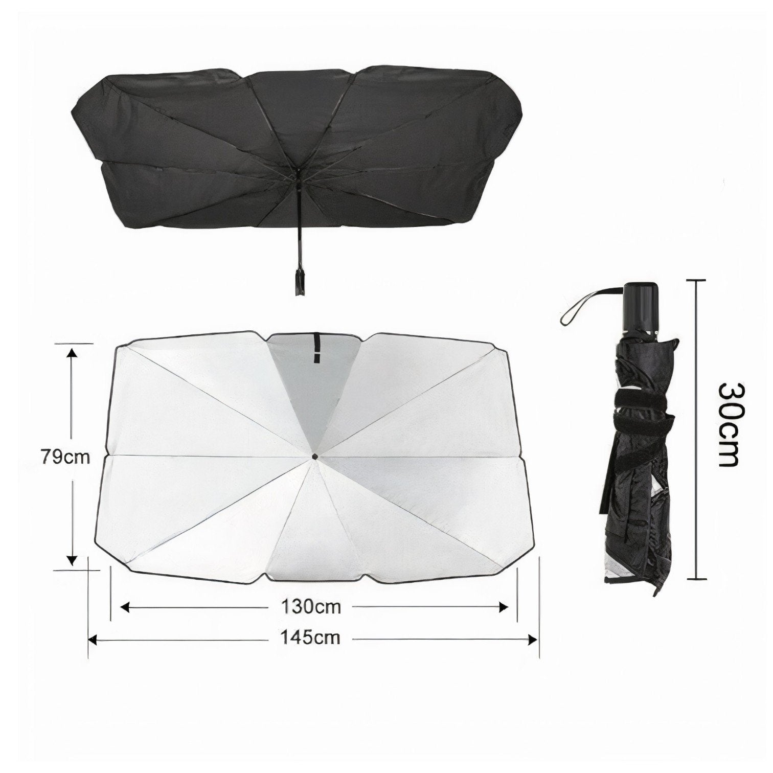 Ușor de Utilizat și Depozitat: Datorită designului său pliabil și ușor de montat, parasolarul se instalează rapid și poate fi depozitat cu ușurință într-un colț al mașinii atunci când nu este folosit.