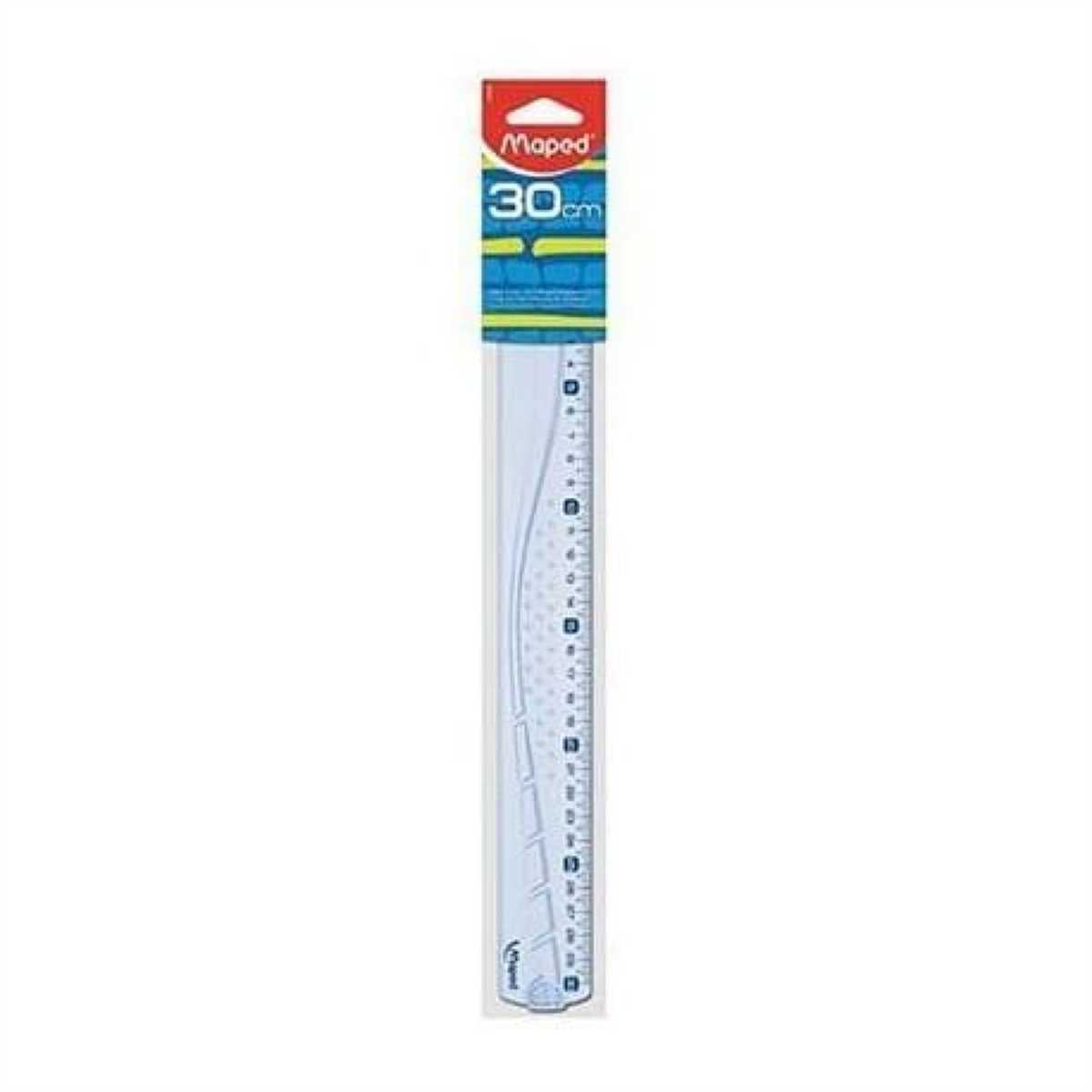 Riglă transparentă, rezistentă, cu lungimea de 30 cm, ideală pentru trasarea liniilor drepte și măsurători precise. Design simplu și durabil, potrivită pentru școală, birou sau acasă.