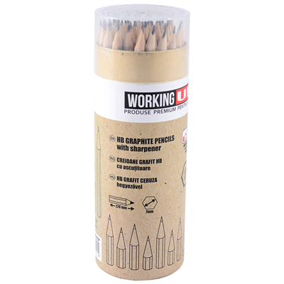 Setul de 40 de creioane WORKING UP HB cu radieră este soluția practică pentru activități de scriere, desen tehnic sau schițare, atât acasă, cât și la birou sau în mediul educațional.